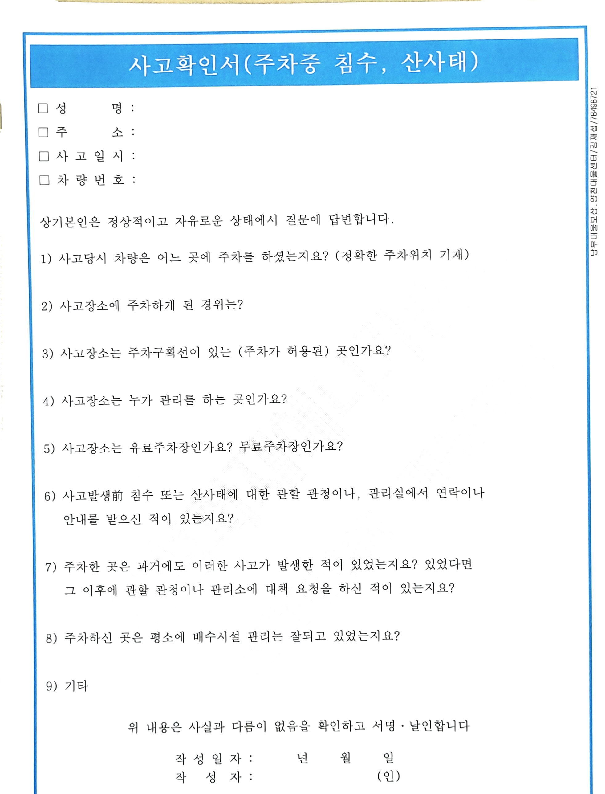 위에는 직접 제가 작성한 침수차 보험처리 접수입니다.