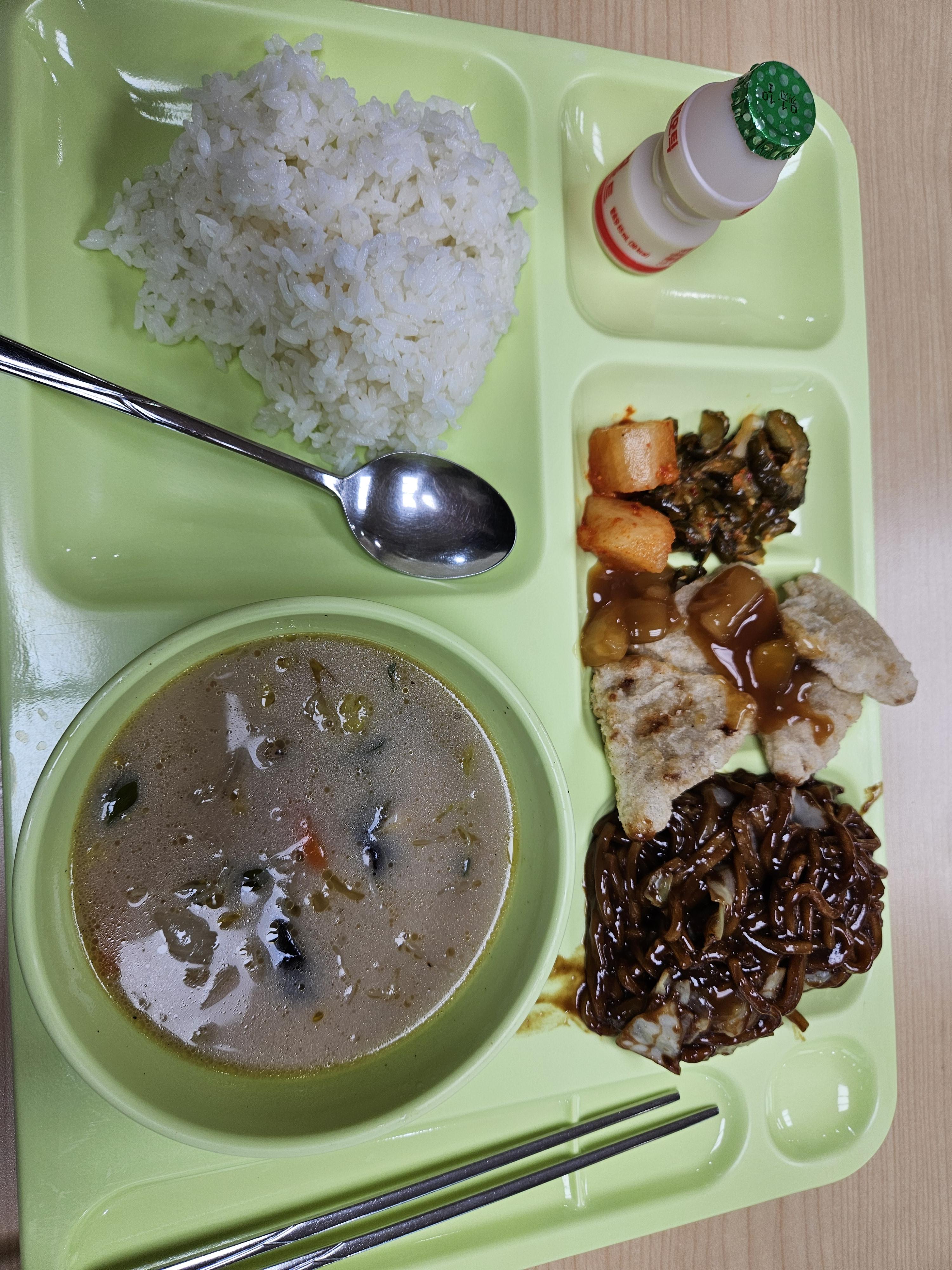 오늘의 메뉴는 밥, 국, 탕수육, 짜장면