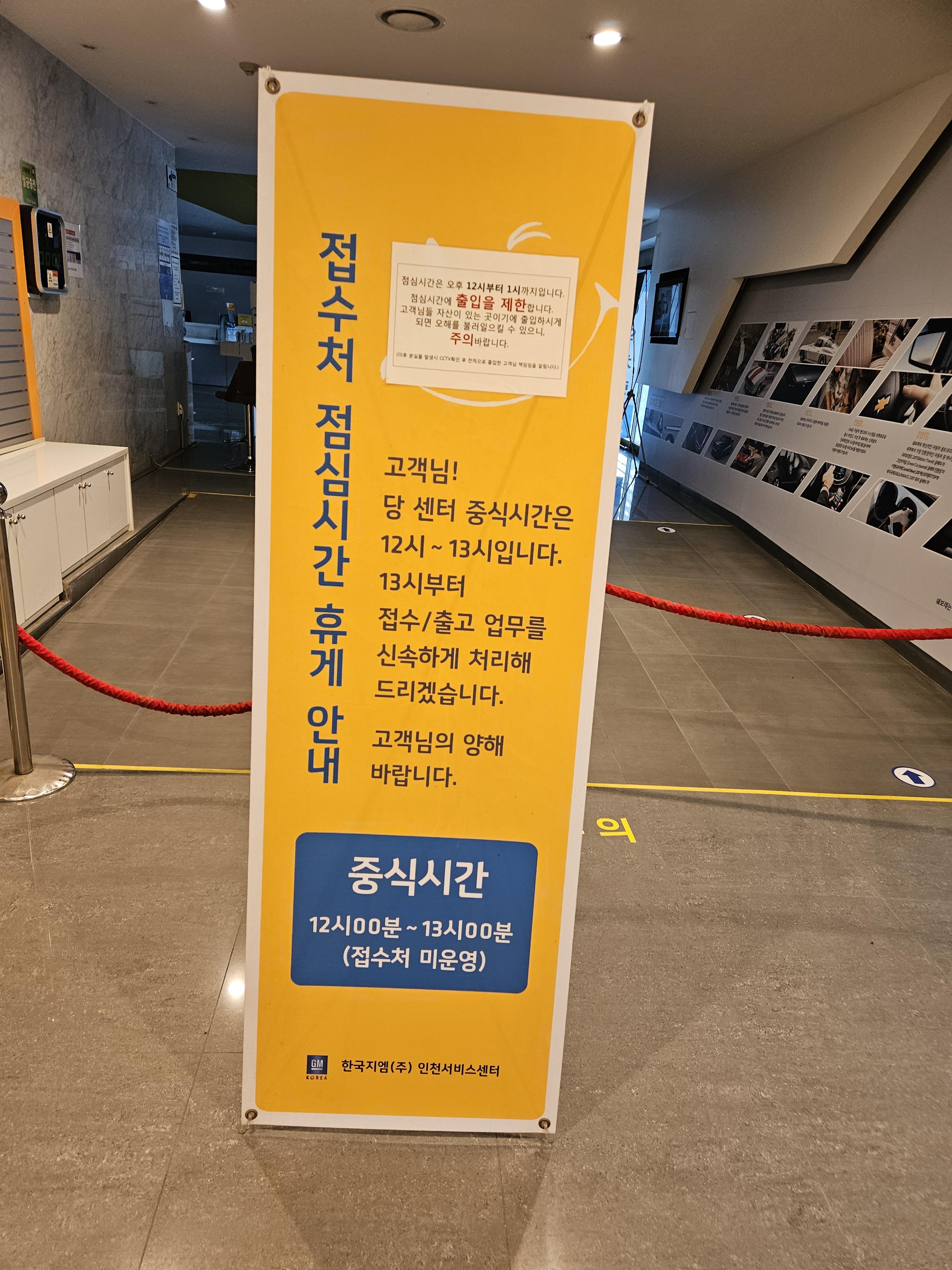 쉐보레 인천직영점 점심타임 딱 걸려서